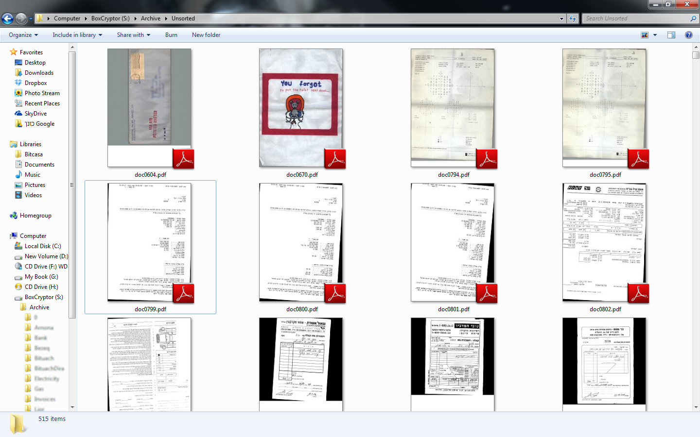 Open the File Explorer to where you scanned all your documents, and set the view to ‘Extra Large Icons’. This way you can see a file preview instead of an icon, and know, more or less, what is on each document without actually opening it.
